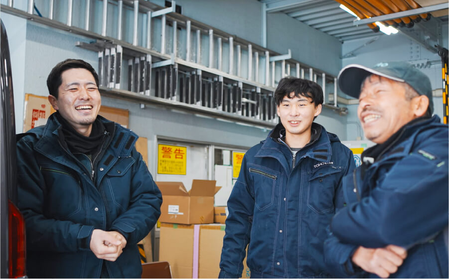 遠方からの就職は、不安もあると思いますが、当社は面倒見の良い先輩が多く、仕事も生活も気軽に相談できます。最初は土地や環境に慣れることからで大丈夫です。「ちょっと挑戦してみたい」という気持ちでOK。しっかりサポートします!