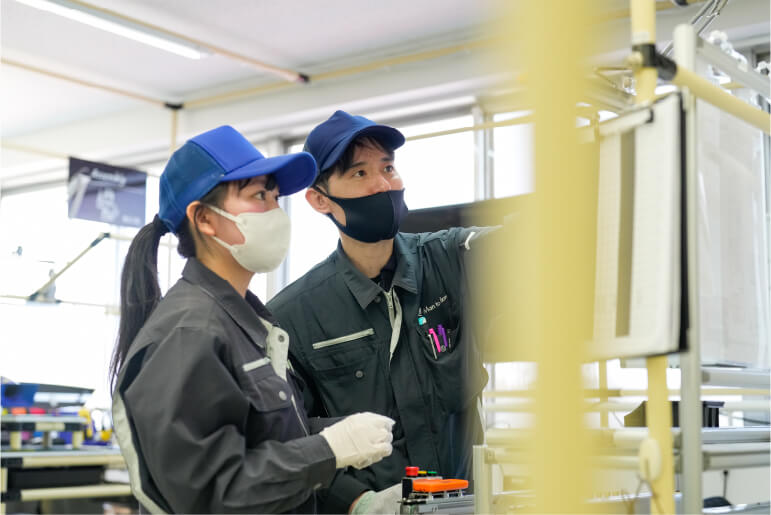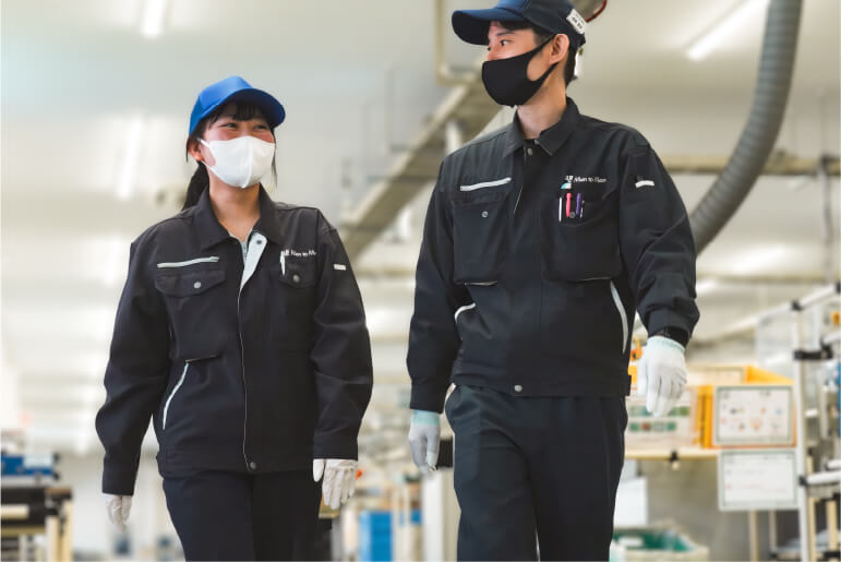 作業は、先輩社員がマンツーマンでみなさんに教えてくれます。解らないまま作業を行うと品質に大きな影響を与えますので、不安なことはすぐに聞くようにしてください。仕事面でも生活面でもしっかりサポートしていきますので安心してください。みなさんと一緒に働けることを楽しみにしています。